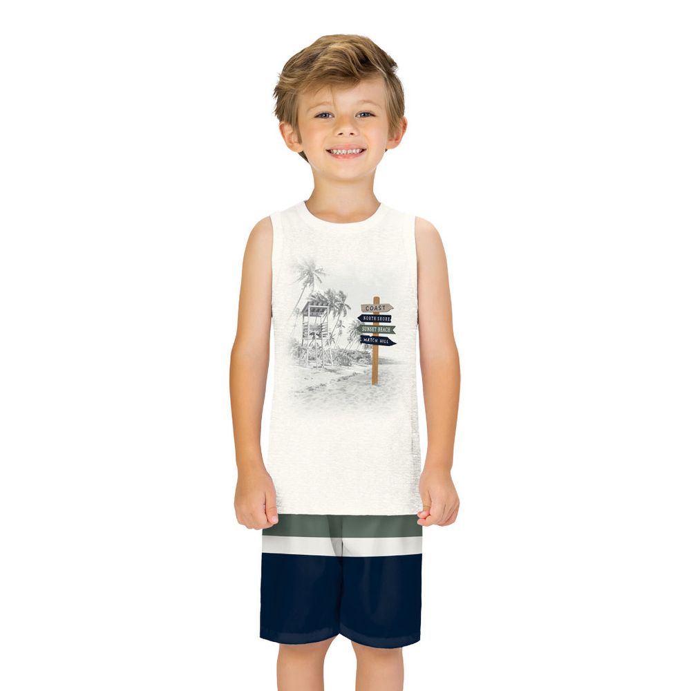 | Composição | Camiseta 100% algodão e bermuda 100% poliéster |